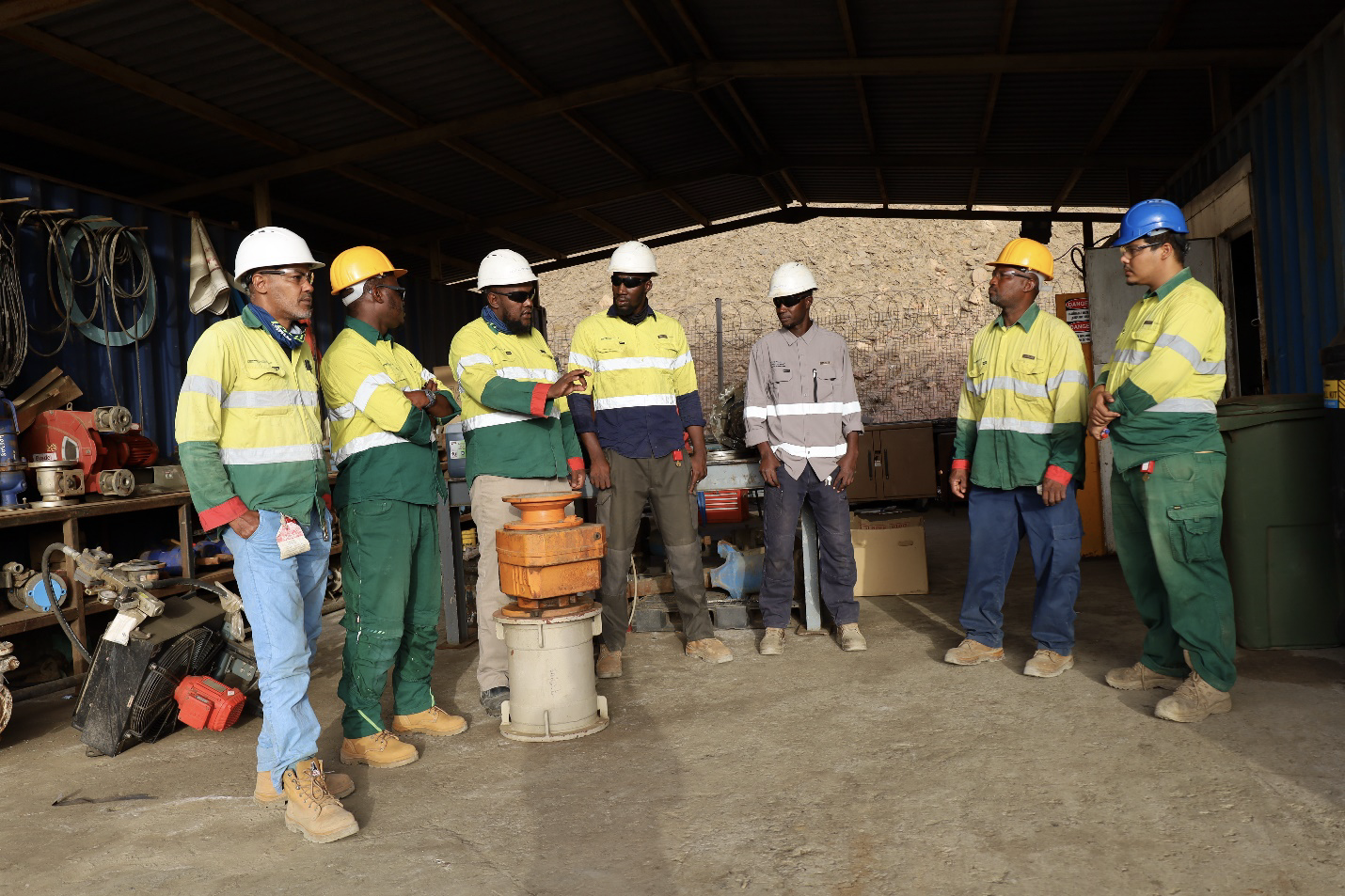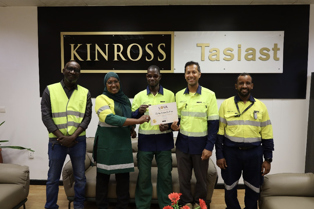 Mamadou with his LOVA with Afjal Hashim, Vice-President and General Manager, Tasiast, his supervisor and team members