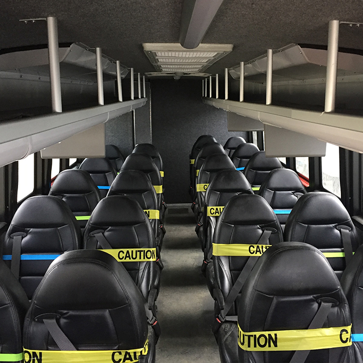 Social distancing precautions suggested by Chris on a bus that transports employees to site