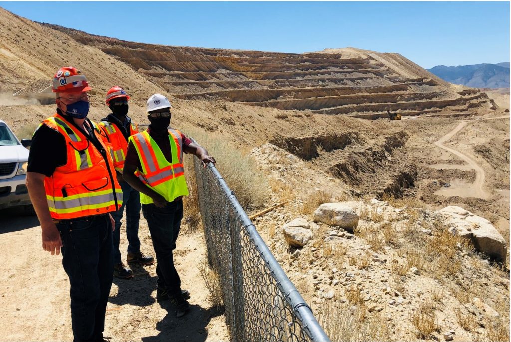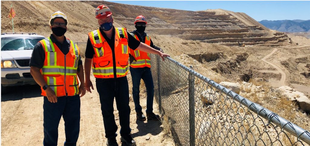 Vicente Ramirez, Continuous Improvement Manager, Bald Mountain (left), John Miller, Continuous Improvement Facilitator, Round Mountain (middle), and Joseph Amankwah, Continuous Improvement Facilitator, Round Mountain (right), at the overlook