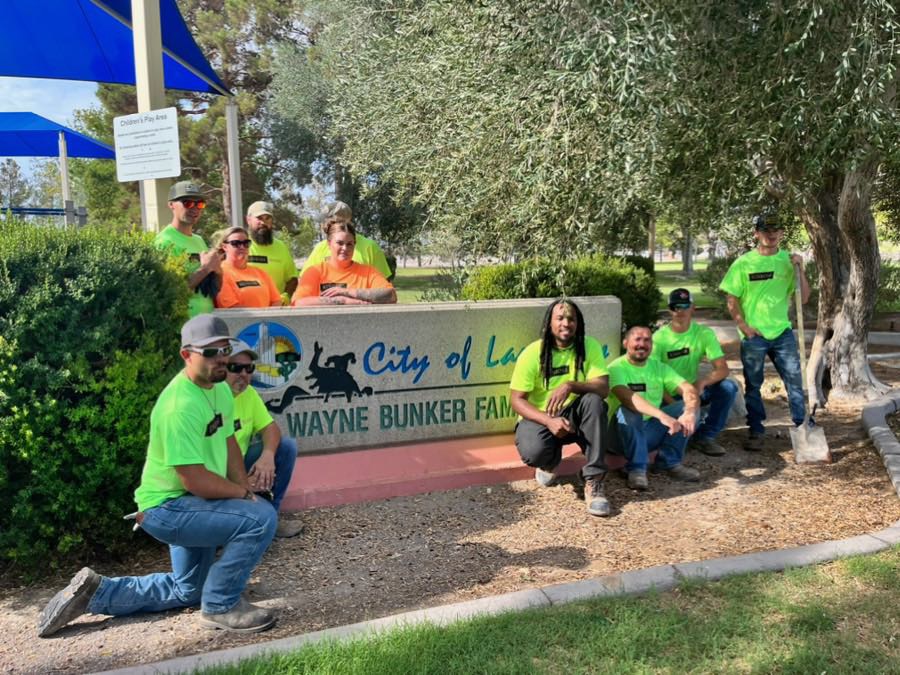 Kinross Nevada volunteers at the Wayne West Bunker Family Park entrance sign