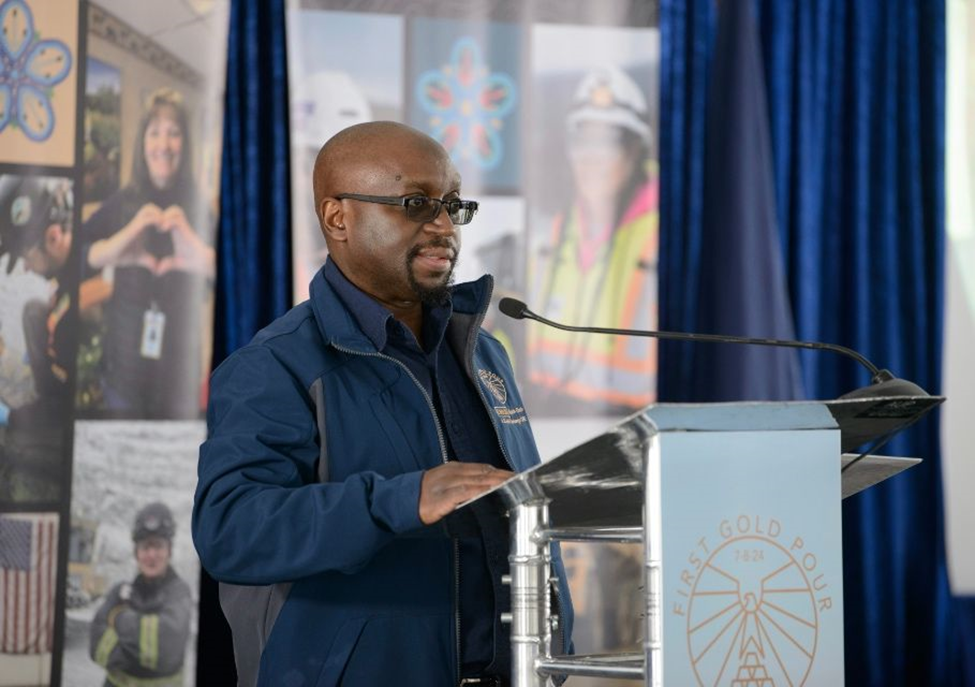 Paul Rollinson speaks to attendees at the gold pour ceremony