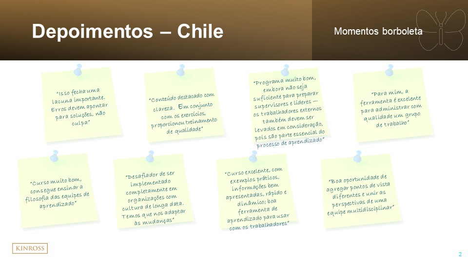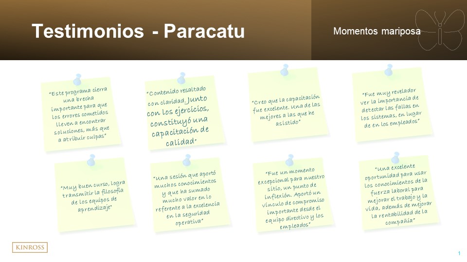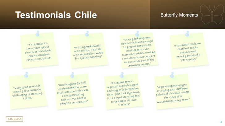 Last week, we heard from the Tasiast team about the roll-out of the program and how it will benefit the site going forward. This week, we will hear from our Paracatu and Chile teams about the learnings from the program and how they will contribute to the safety, teamwork and collaboration of our South American sites.