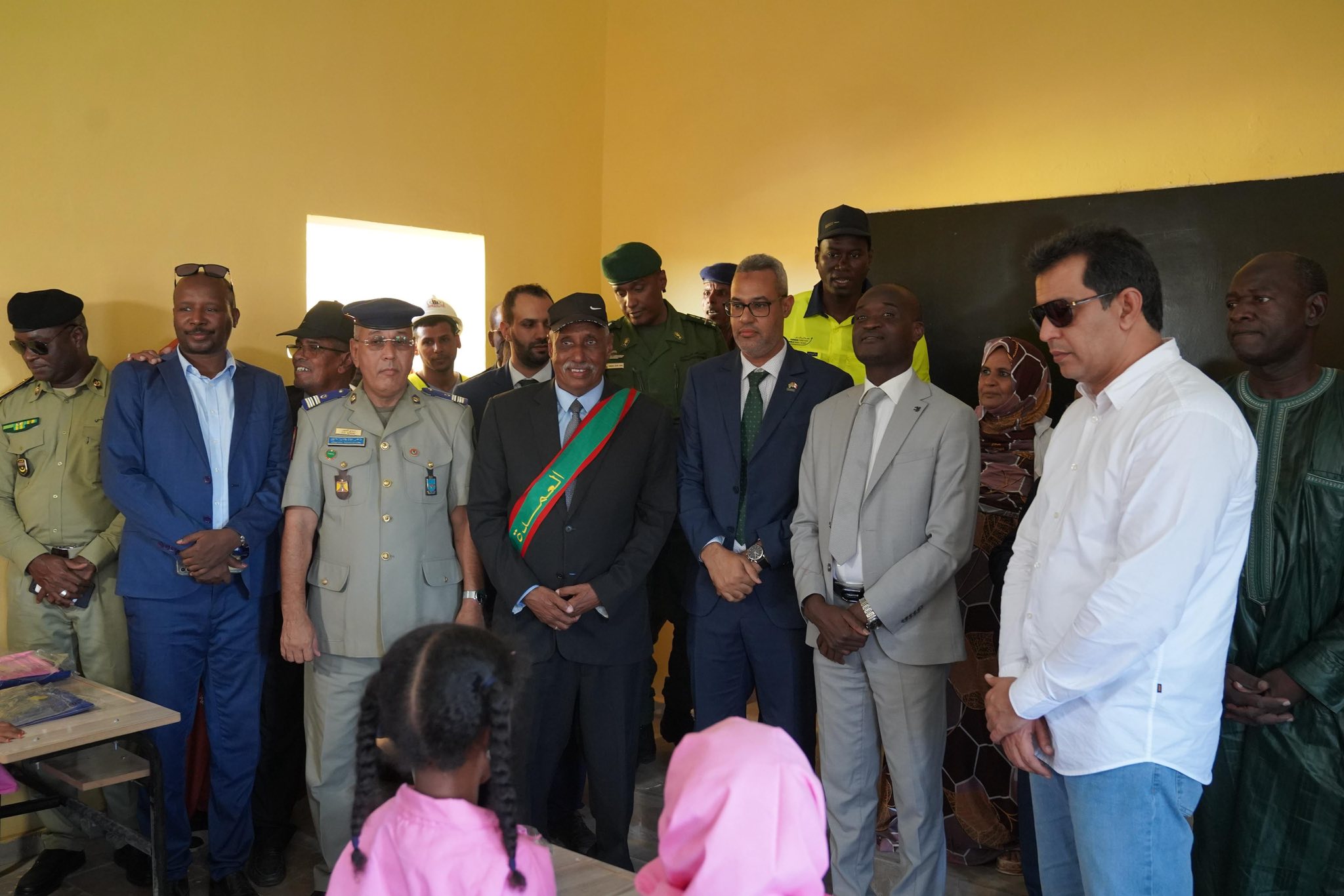 Kinross representatives and local government officials inside one of the 11 newly constructed classrooms in the Inchiri community
