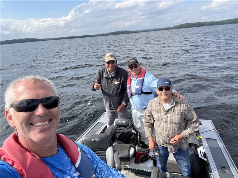 This summer, Paul Rollinson, CEO, Kinross Gold, Geoff Gold, President, Kinross Gold, Eric Lamontagne, Sr. Advisor, Canada Projects, and Ian Russell, Site Manager, Great Bear, hosted our First Nation partners including Chief Bill Petiquan of the Wabauskang First Nation and Chief Clifford Bull from the Lac Seul First Nation on a two-day fishing trip also attended by members of the community, band council, Shared Spirits, and the Great Bear team.
