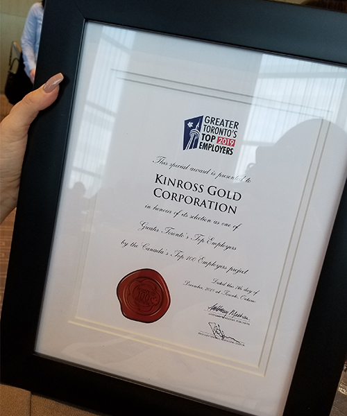 We are happy to announce that Kinross has been named one of the Greater Toronto Area’s Top Employers for 2019!