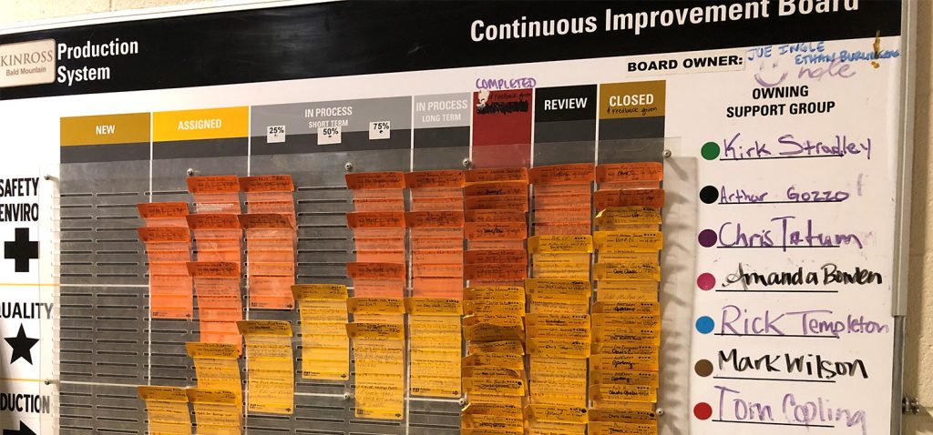 “CI Boards allow us to capture the great safety, savings, and operational ideas from our team and implement them in a timely manner, said Dale Thompson, Maintenance Manager and board champion, Bald Mountain. “This partnership ensures that we are all working towards establishing best practices and generating a stronger future for Bald Mountain.”